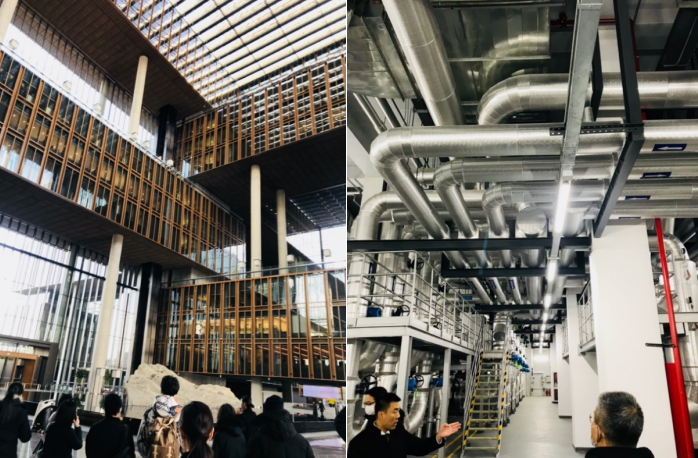 亞洲基礎(chǔ)設(shè)施投資銀行總部是國家“一帶一路”倡議建設(shè)重點(diǎn)工程,也是首個(gè)由我國倡議成立的政府間多邊開發(fā)機(jī)構(gòu)??偛看髽且浴棒敯噫i”為設(shè)計(jì)理念,高空俯視的“中國結(jié)”寓意著“中國結(jié)·連接世界”,彰顯著我國開放自信的姿態(tài)。設(shè)計(jì)師們?cè)谥v解員的帶領(lǐng)下先后參觀了公共區(qū)域、辦公區(qū)域和設(shè)備機(jī)房等,全面了解了大樓的建筑特色,80米高的挑空大廳和7個(gè)采光中庭的設(shè)置使所有工作區(qū)享受開闊視野與均衡采光,10處空中花園的置入營造出了兼具藝術(shù)性和實(shí)用性的綠色多元復(fù)合空間,總部大樓與眾不同的設(shè)計(jì)巧思和精妙絕倫的建筑技術(shù)令在場(chǎng)的設(shè)計(jì)師們深感震撼。