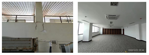 馬爾代夫外交部辦公樓是我國的援建項(xiàng)目,位于首都馬累,近幾年陸續(xù)出現(xiàn)墻體地面裂縫、材料老化腐蝕、建材質(zhì)量缺陷等問題。設(shè)計(jì)九所承接該項(xiàng)目后高度重視,2017年至2019年,派項(xiàng)目組三次赴馬調(diào)研,通過沉降監(jiān)測(cè)、結(jié)構(gòu)檢測(cè)鑒定并結(jié)合現(xiàn)場(chǎng)踏勘,設(shè)計(jì)師研判出了裂縫成因,并結(jié)合馬爾代夫氣候潮熱以及辦公樓緊鄰海岸線的特點(diǎn),將設(shè)計(jì)改造的重點(diǎn)聚焦在防鹽霧腐蝕,系統(tǒng)更新,提升建筑物耐久性上。項(xiàng)目組還積極走訪當(dāng)?shù)刂匈Y企業(yè)施工工地和建材市場(chǎng),了解當(dāng)?shù)爻S媒ㄖ?gòu)造措施和建材市場(chǎng)產(chǎn)品種類。