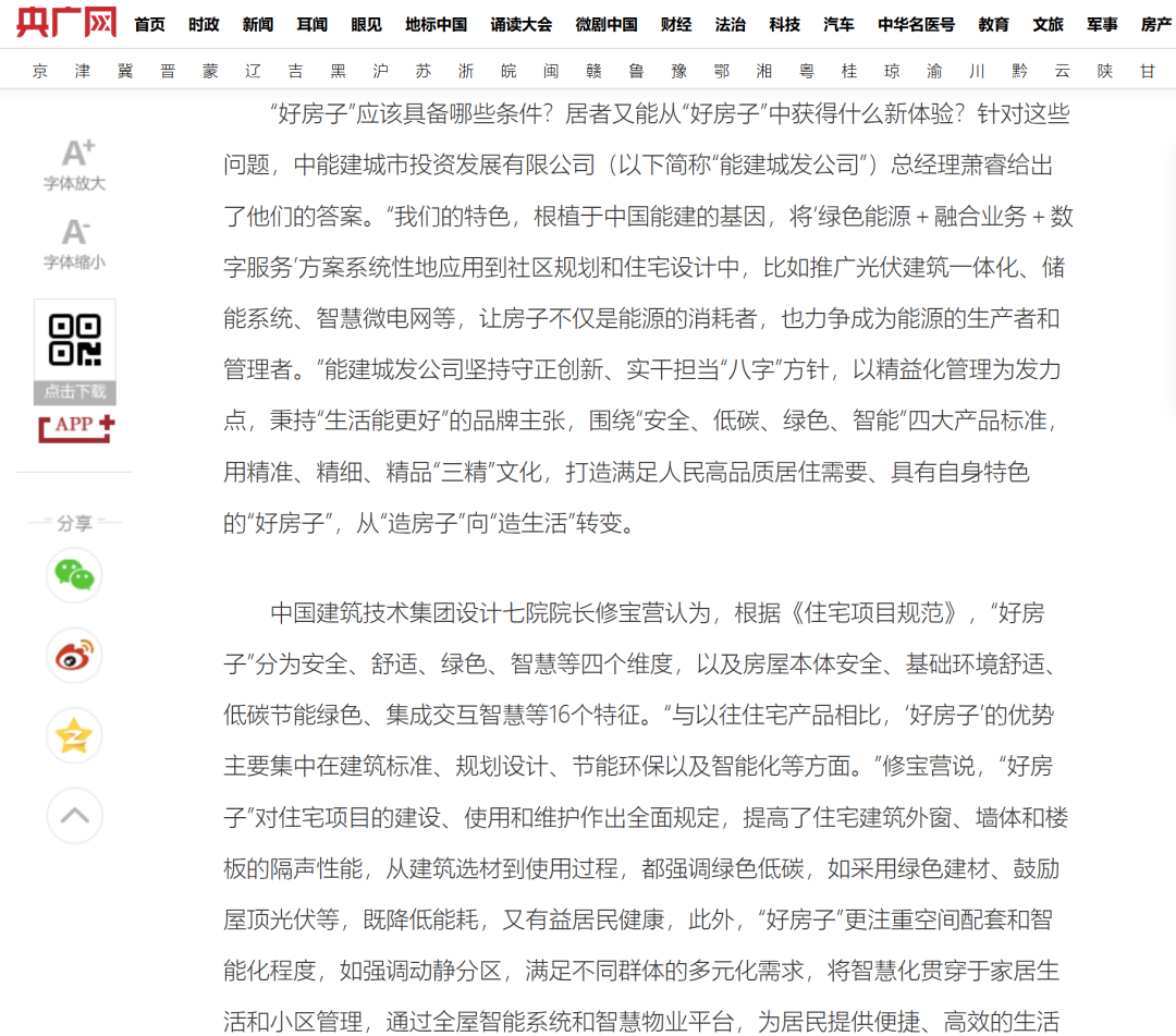 能建城發(fā)總經(jīng)理蕭睿在報(bào)道中指出,企業(yè)的“好房子”實(shí)踐根植于中國(guó)能建特色,核心是將“綠色能源+融合業(yè)務(wù)+數(shù)字服務(wù)”方案系統(tǒng)性植入社區(qū)規(guī)劃與住宅設(shè)計(jì):