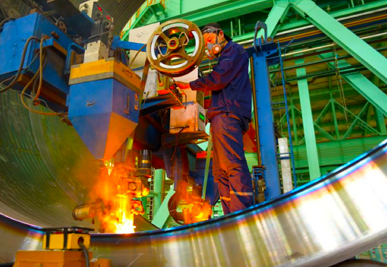 ▲中國(guó)一重大連核電石化公司石化筒節(jié)生產(chǎn)場(chǎng)景