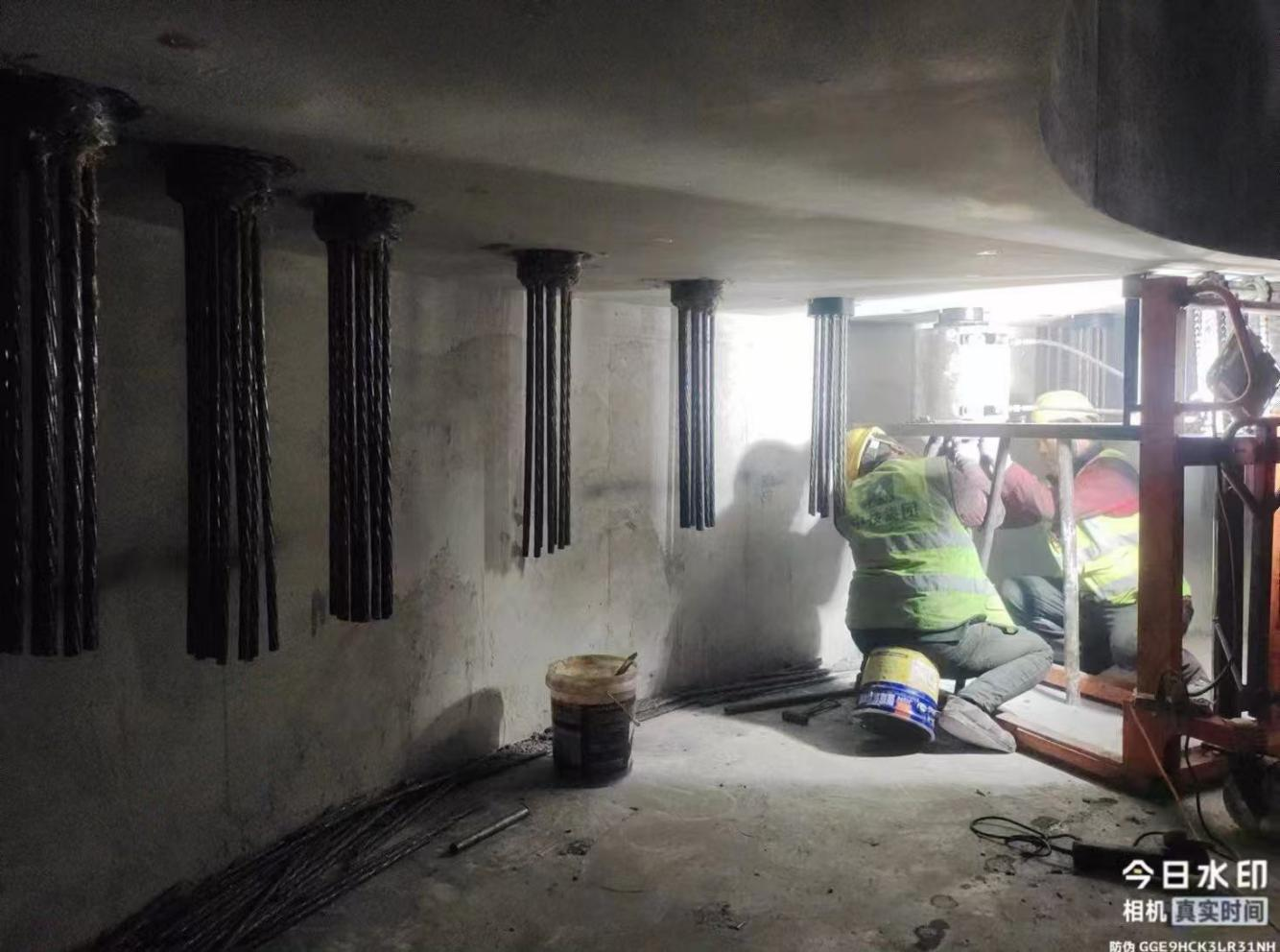 本風(fēng)電項目建設(shè)規(guī)模50MW,包含4臺GW-191-5000機型和5臺GW-191-6000機型,采用鋼混塔架結(jié)構(gòu),總高度160米,其中混凝土塔段高度約為112.6米,預(yù)應(yīng)力體系采用直徑15.2,極限強度標(biāo)準(zhǔn)值1860MPa的低松弛高強度無粘結(jié)鋼絞線,搭配使用TENSAM15系列1860MPa級錨具,環(huán)向36孔布局,單孔10/11根,目前項目已發(fā)電并網(wǎng),運行穩(wěn)定。