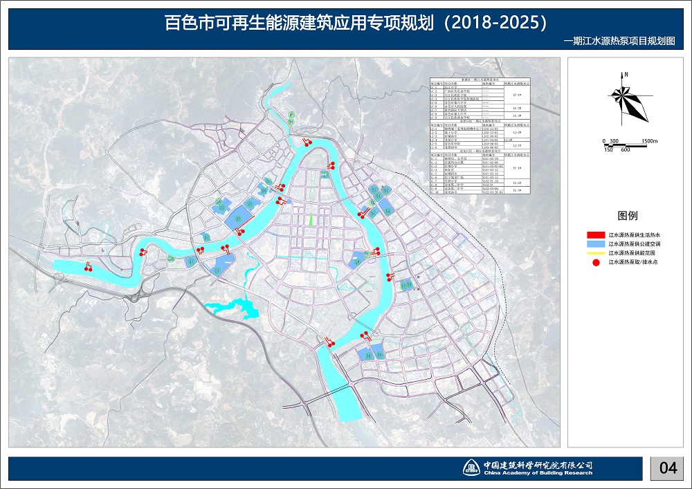 本規(guī)劃大規(guī)模應用江水源熱泵。劃針對百色市獨特的豐富水源——右江水系,專門制作江水源熱泵規(guī)劃專篇,研究江水源熱泵效率的各影響因子,以取排水點互不干擾為原則,科學排布取排水點。并根據建筑物布置確定江水源熱泵站點位置。
