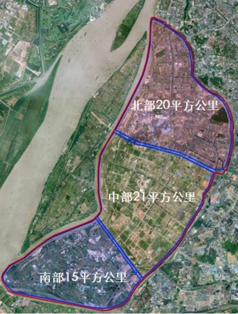 河西新城位于南京主城西南部,北起三汊河,南接秦淮新河,西臨長江夾江,東至外秦淮河、南河,總面積約94平方公里,其中,陸地面積56平方公里,江心洲、潛洲及江面38平方公里。