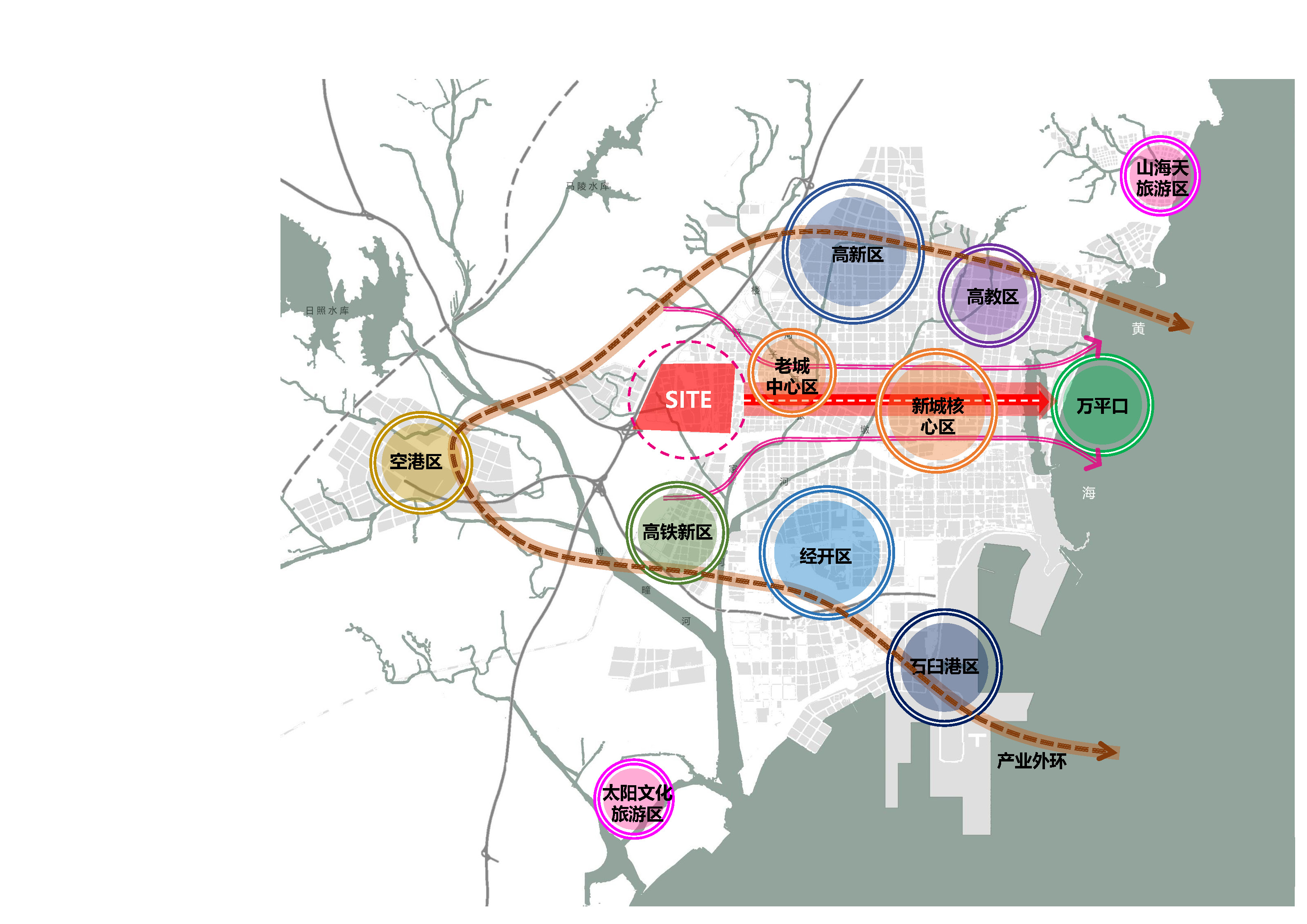 東港城西片區(qū)位于日照西部門戶,東臨老城中心,南臨高鐵片區(qū)、西有空港新城,北有高新區(qū),總面積7.17平方公里。對外通過高速、高鐵、機(jī)場與周邊區(qū)域城市緊密聯(lián)系。對內(nèi)山東路、海曲路、迎賓路三條東西向城市主干道與城市中心無縫對接,南北向合村路、丹陽路與北部高新區(qū)、南部經(jīng)開區(qū)、臨港區(qū)一體化聯(lián)通。作為城市西部門戶,工業(yè)衰敗、設(shè)施老化、居住品質(zhì)下降已經(jīng)成為當(dāng)?shù)厝说钠毡橛∠?。在新的發(fā)展時期,城西片區(qū)將承載產(chǎn)城融合的歷史使命,實(shí)現(xiàn)城市品質(zhì)化擴(kuò)容的戰(zhàn)略支點(diǎn),迎來了實(shí)現(xiàn)歷史性跨越發(fā)展的關(guān)鍵機(jī)遇期。