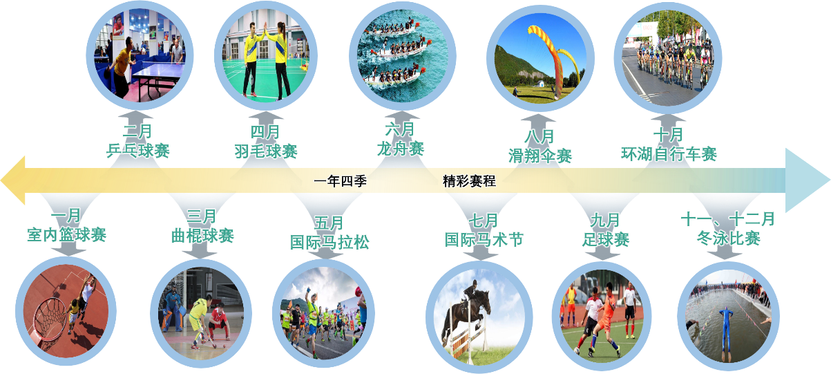 2.4.運(yùn)動賽事:結(jié)合國家加快發(fā)展健身休閑產(chǎn)業(yè)的指導(dǎo)意見、體育運(yùn)動名錄及小鎮(zhèn)建設(shè),打造灰湯體育小鎮(zhèn),布局如足球、馬術(shù)、自行車(東鶩山環(huán)道及環(huán)湖自行車道)、環(huán)湖田徑馬拉松、游泳、賽艇、龍舟賽、擊劍、射箭、射擊(室內(nèi))、太極、廣場舞、攀巖、競走等運(yùn)動項(xiàng)目,結(jié)合各已開發(fā)項(xiàng)目布置全民休閑運(yùn)動項(xiàng)目,打造湖南省賽事運(yùn)動基地。