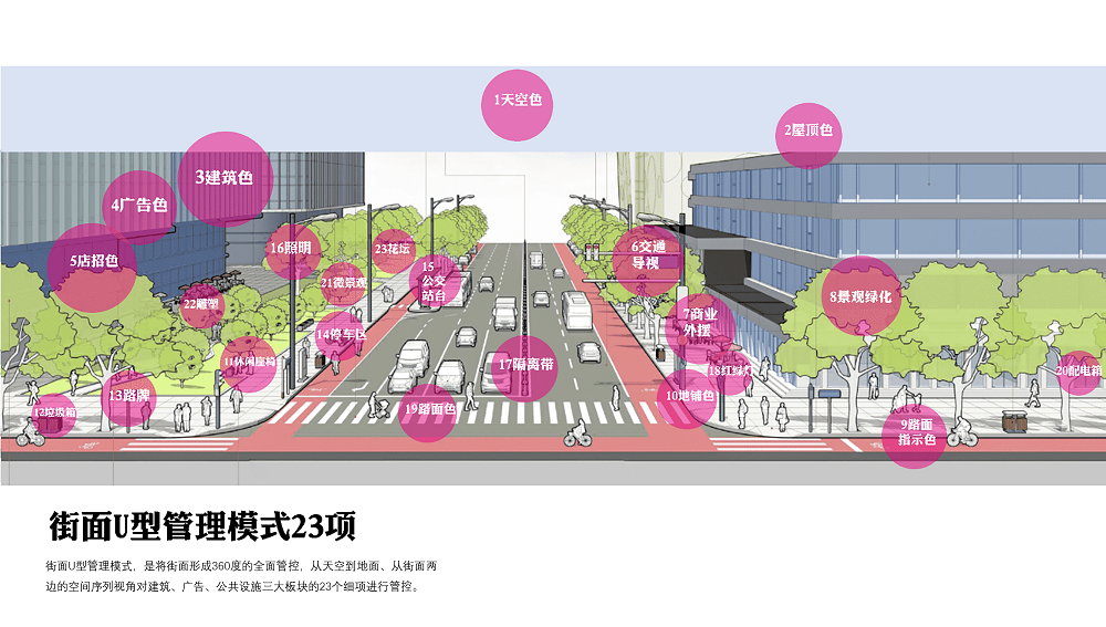 新都區(qū)城市容貌提升,是在公園城市建設背景下,追溯城市文脈、梳理城市色彩基底、尋找城市主調,以城市色彩為核心,開展的系統(tǒng)性城市形象識別系統(tǒng)提升。創(chuàng)新執(zhí)行的城市色彩、戶外外擺、戶外廣告、戶外導視系統(tǒng),將城市以點、線、面的方式,全系統(tǒng)覆蓋,通過綜合性的治理體系及樣板段示范,建立可實施可落地的管控引導。