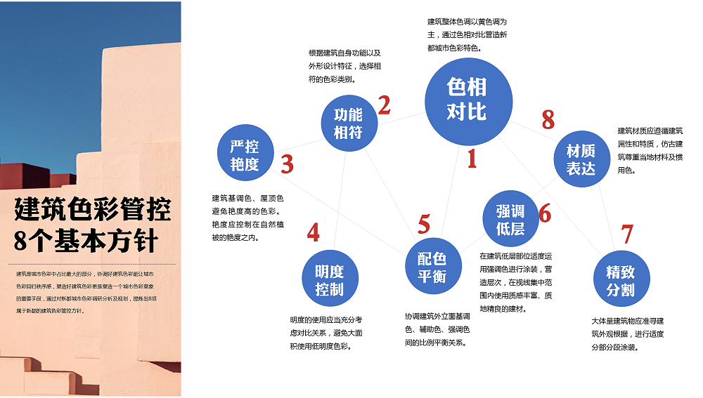本項目位于四川省成都市新都區(qū),區(qū)域面積496 平方千米,城市人口規(guī)模約90萬人。制定新都區(qū)城市色彩導則,依托色彩導則制定戶外廣告導則、 城市外擺導則、導視系統(tǒng)設計導則,規(guī)范城市建設及城市發(fā)展過程中的精細化管控。項目于2020年8月啟動,歷時6個月完成所有工作并取得驗收。