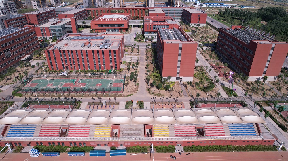規(guī)劃布局以傳統(tǒng)禮教制式結(jié)合中式庭院格式,采用動(dòng)靜分區(qū)過渡的規(guī)劃邏輯,將教學(xué)相長(zhǎng),綜合培養(yǎng)融入其中:建筑風(fēng)格上以學(xué)院風(fēng)為主,采用紅磚,鋼結(jié)構(gòu),玻璃,清水混凝土等材料,形成了現(xiàn)代建筑與工業(yè)風(fēng)相結(jié)合的立面風(fēng)格,體現(xiàn)了烏海的城市特點(diǎn)。