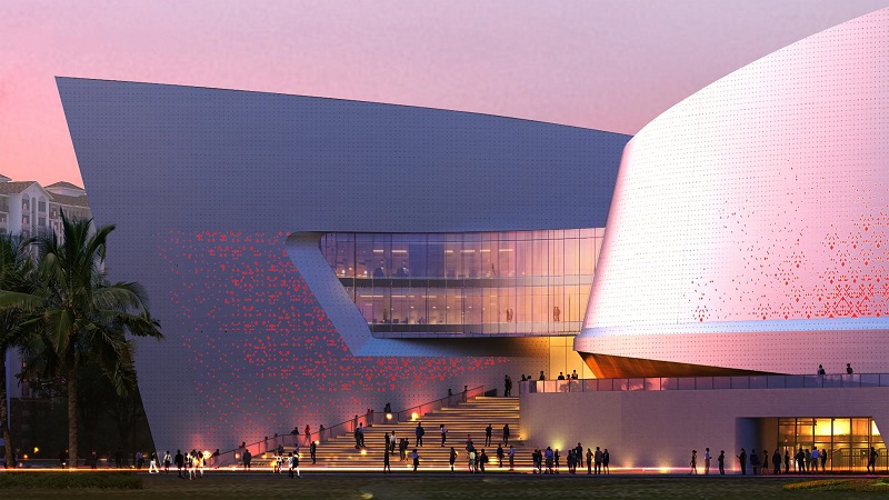 海南省非物質(zhì)文化遺產(chǎn)展示中心項目位于海南省??谑协偵絽^(qū),總建筑面積52180平方米,建筑高度42米,是海南省十大重點公共文化工程首批落地實施項目。該項目為瓊劇院、非遺博物館及藝術中心三大功能合一的文化綜合體,主要設有大劇場、實驗小劇場、綜合排演廳、黎錦館、非遺陳列館、非遺體驗傳習館、非遺傳承人技藝活態(tài)展示館、藝術中心等多種類型公共文化設施。