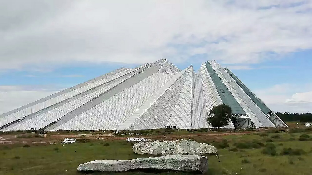 頂部的采光帶,以及鏤空處光影的引入,豐富了室內的空間,象征萬里浩瀚的星空,將人們的思緒帶到遙遠的年代,有棱角的折面,表現了成杰思汗時代的力量。