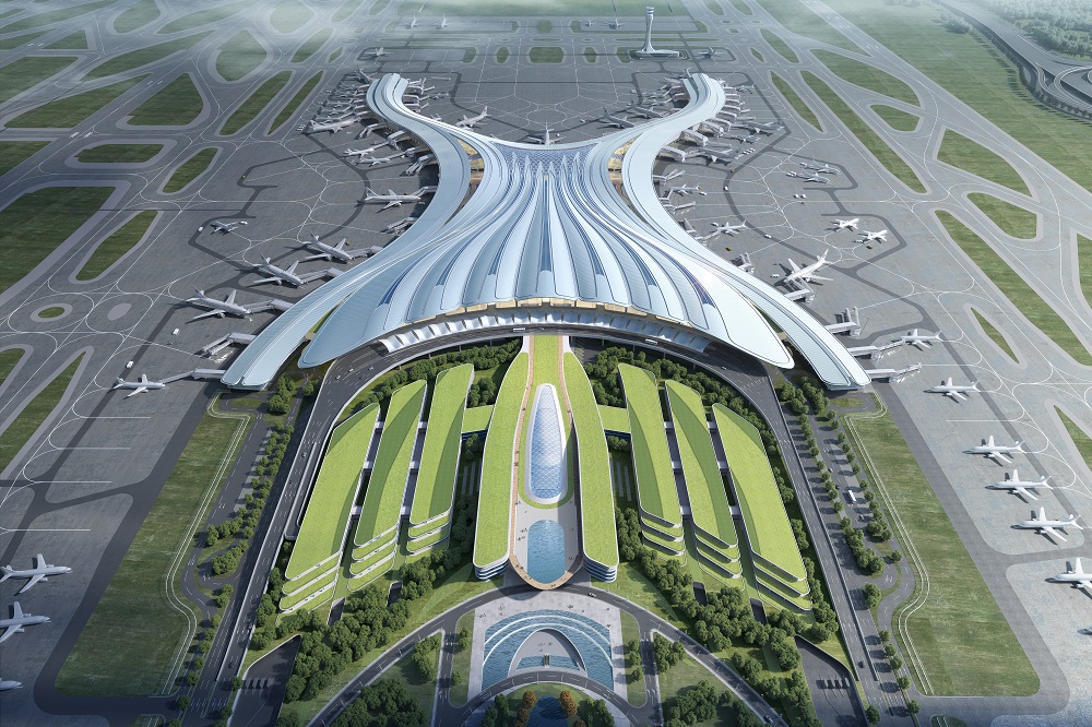 廣州白云國(guó)際機(jī)場(chǎng)三期擴(kuò)建工程T3航站樓采用集中式主樓+指廊式構(gòu)型,由主樓、東南指廊、西南指廊、東北指廊、西北指廊、東指廊及西指廊組成,航站樓總建筑面積為49.86萬平方米,建筑高度42.95米,整體南北方向長(zhǎng)970米,東西寬592米。